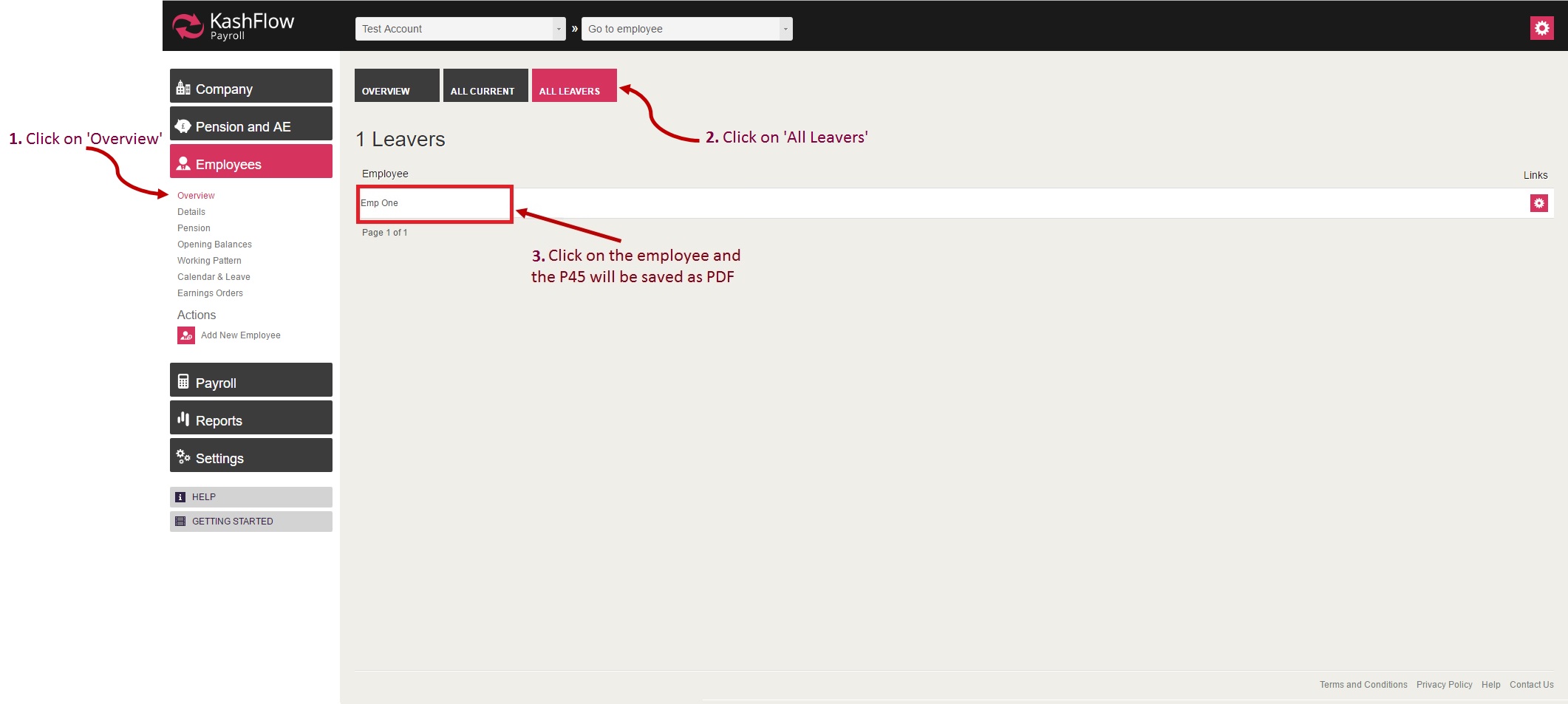 P45 report can be printed from 2 different locations within KashFlow payroll