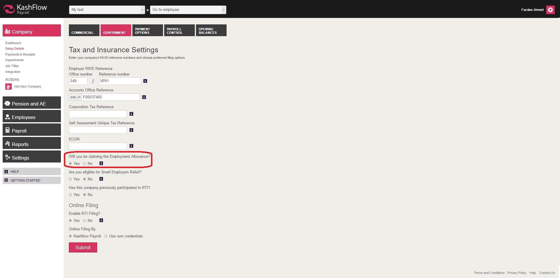 How to claim Employment Allowance through KashFlow Payroll
