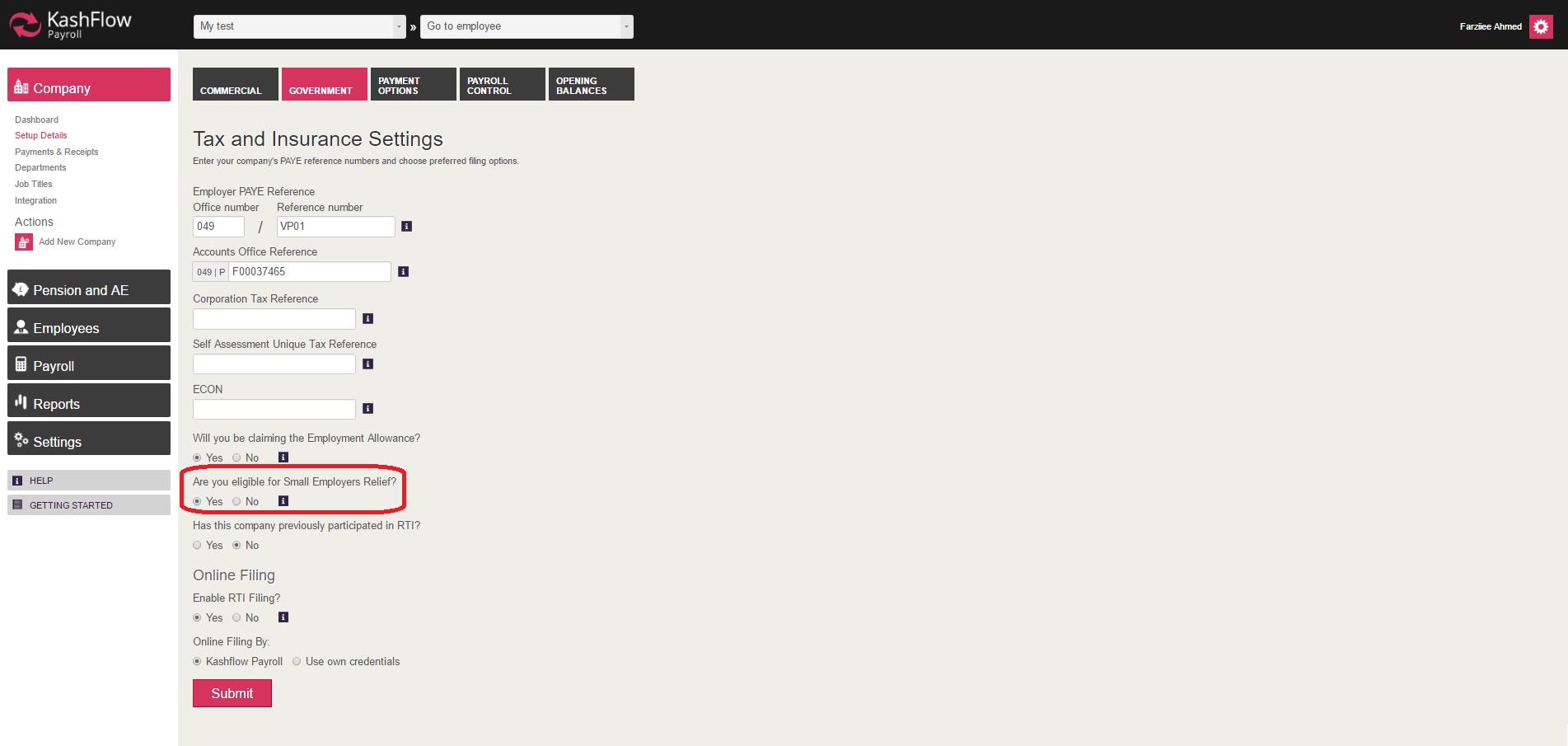 How to claim 'Small Employer Relief' via KashFlow Payroll