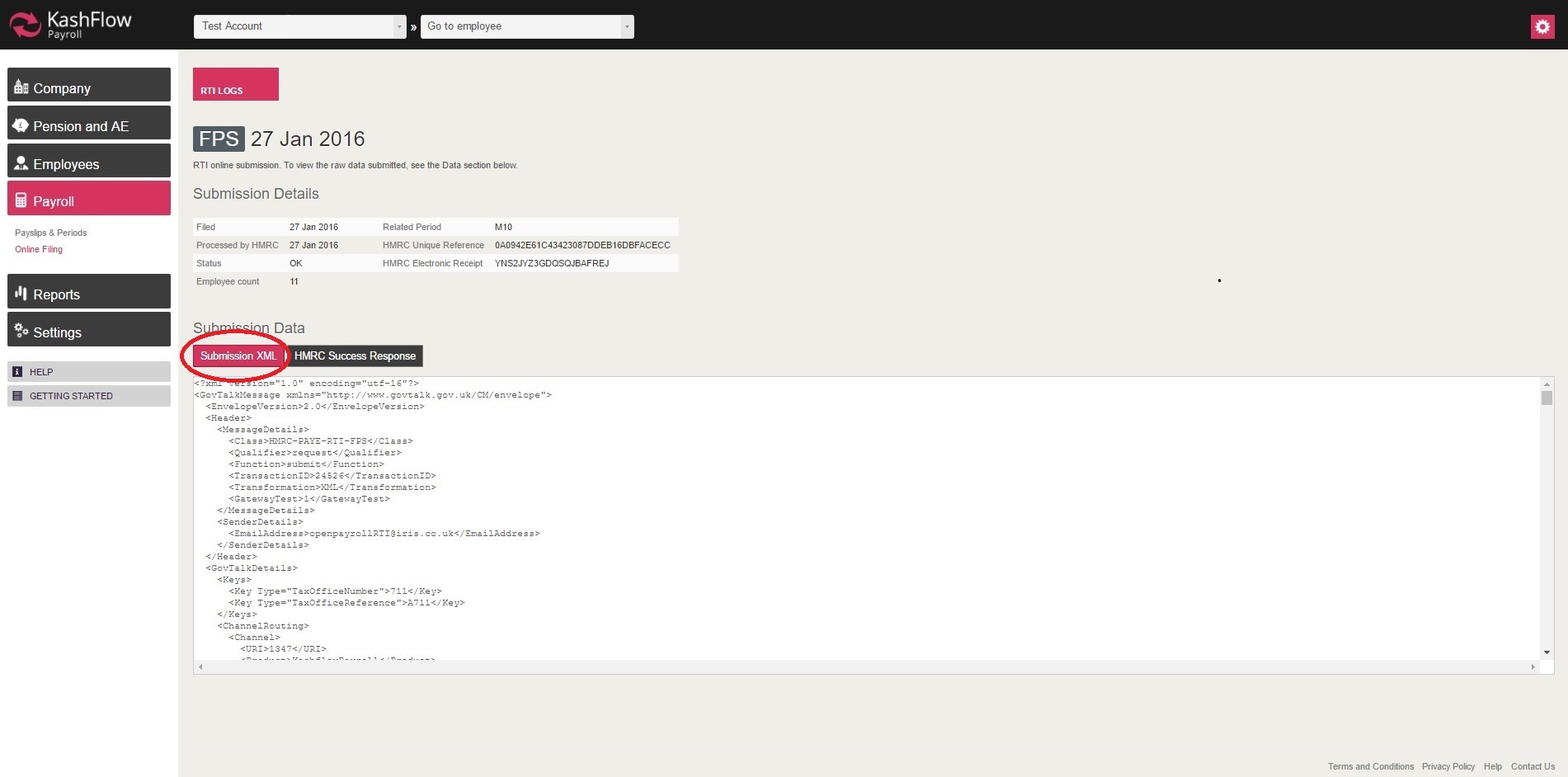 If you wish to view what has been sent across to HMRC, then you can do so by going to: Payroll > Online Filing > click on the period which you wish to view the data > click on 'Submission XML'.