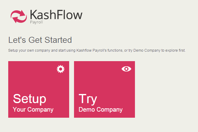 Upon successfully creating your password, you will be taken to the KashFlow Payroll setup wizard to add your first company, alternatively you can explore the system using the free demonstration company.